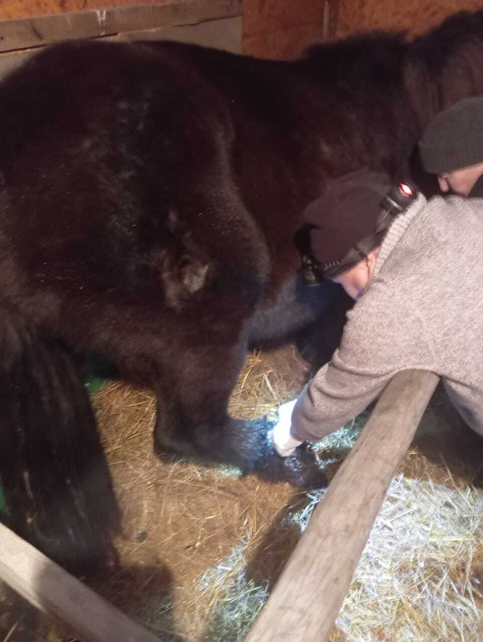 Опытный ветеринарный врач настоятельно рекомендовал первым делом дать замерзшим тканям прогреться, поскольку лишь тогда возможно точно определить степень повреждений. Лошадь срочно доставили в теплое помещение, где ткани полностью оттаяли.
