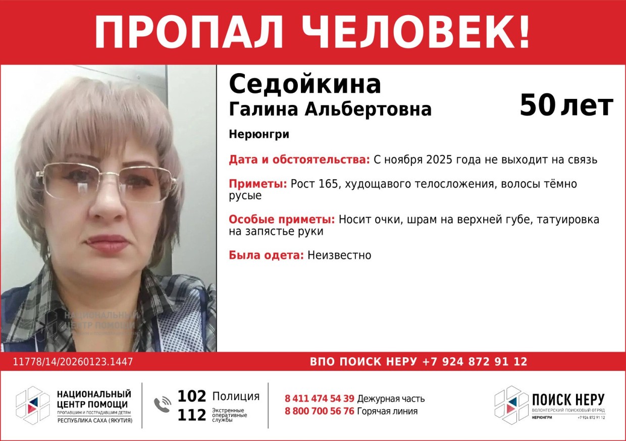 Если вы видели женщину, похожую на Галину Седойкину, или располагаете какими-либо сведениями о ней, необходимо незамедлительно связаться: