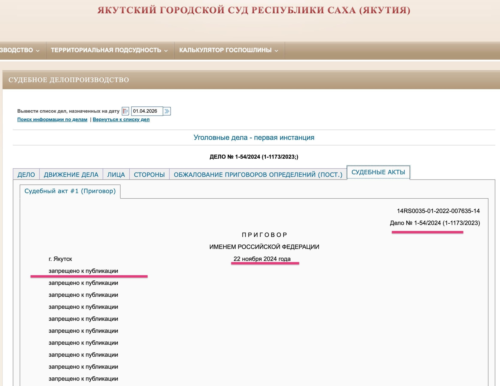 Приговор Якутского городского суда (22 ноября 2024 года):