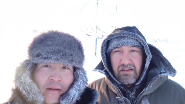 Это фотография двух спасённых жителей Юрюнг-Хаи – Егора Васильева (слева) и Михаила Баишева. Когда сломался снегоход, они пошли пешком в сторону Юрюнг-Хаи, Егор Васильев шёл впереди, его друг Михаил – сзади. Через какое-то время Егор оглянулся и не увидел своего товарища. Очень долго искал его, но так и не смог найти. От места, где заметил пропажу, начал оставлять метки. По ним сегодня быстро нашли Михаила Баишева. Михаил рассказал, что спал в снегу три раза, полностью закапываясь в снег, поэтому не получил обморожений
