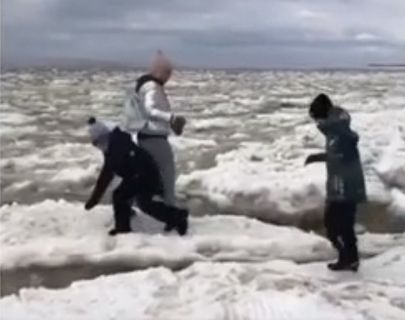 В федеральных и региональных средствах массовой информации размещена видеосъемка, на которой запечатлена молодая женщина и двое детей, которые в условиях густого ледохода на природном водоеме ведут опасную игру - перепрыгивают по льдинам, подвергаясь опасности падения в воду.