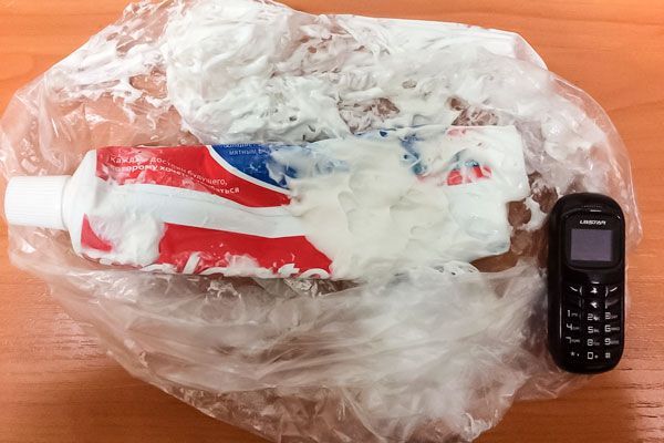 В той же колонии во время досмотра бандероли, поступившей для осужденного М. от его приятеля, был обнаружен и изъят сотовый телефон, спрятанный ухищренным способом в тюбик с зубной пастой.