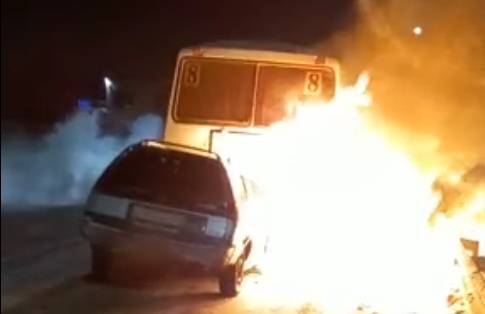 По словам очевидцев происшествия, «Кариб» ударился о газовый баллон автобуса. Обе машины загорелись.