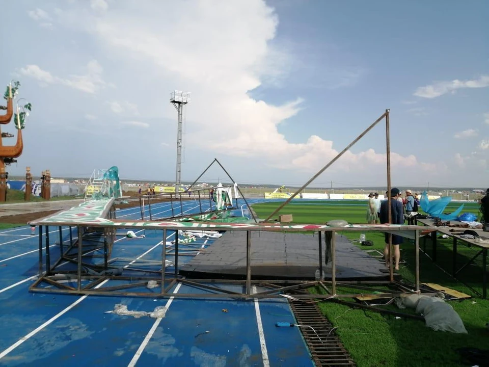 Напомним, что вчера, 4 июля при открытии стадиона имени Майа5атта Бэрт Хара и памятника ему же, внезапно разразился ураган. Рухнули конструкции на сцене, в том числе и плазменный экран, подготовленные к церемонии открытия VII Спортивных игр народов Якутии, которые нынче проходят в Усть-Алданском улусе.
