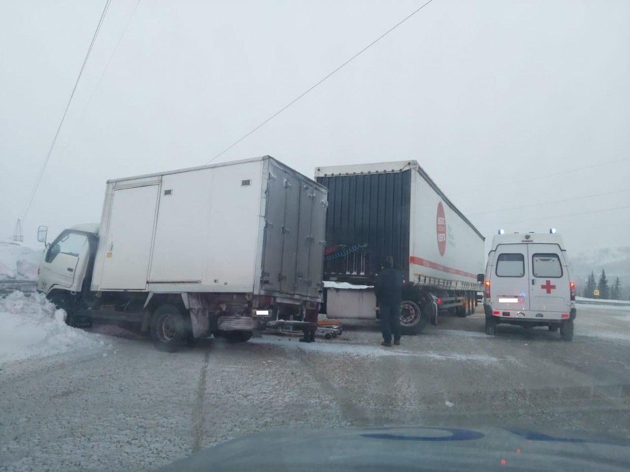 Водитель грузовика был госпитализирован в Алданскую больницу с различными ушибами и переломом правой бедренной кости. Водитель “Вольво” не пострадал.