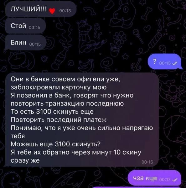 18-летнему студенту СВФУ пришло сообщение в мессенджере «Telegram» от друга, который попросил занять денег. Потерпевший не стал перезванивать приятелю и несколько раз перевел деньги на отправленный аферистом номер банковской карты. Только спустя некоторое время узнал, что аккаунт друга был взломан. В общей сумме аферисты похитили у него 11 200 рублей.