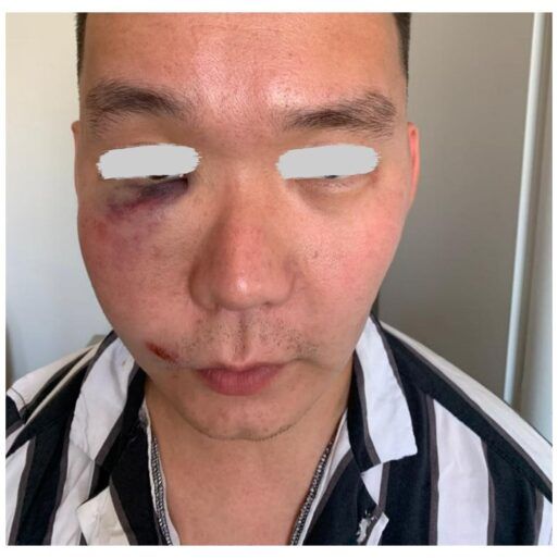 Внезапно сбоку один из них начал наносить мне удары по голове. Я упал на землю, тогда он два раза пнул меня по спине и затылку, затем ударил кулаком. Позже мне сказали, что его зовут Семен, он хотел ударить еще, но его одернули.