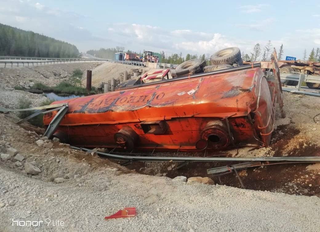 Прокуратура Алданского района организовала проверку по факту розлива нефтепродуктов на 786 км. ФАД «Лена» в результате опрокидывания грузового автомобиля «SHAANXI» в составе полуприцепа цистерны «ENXIN SHIYE», перевозившего дизельное топливо.