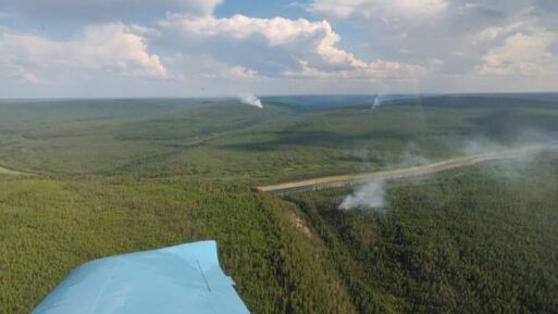 Пожары действуют рядом, в приграничной зоне. Ведётся работа по их ликвидации. Угроза лесному массиву парка на данное время отсутствует. На распространяемой фотографии трех пожаров присутствует крыло самолета, в то время как авиамониторинг в зоне национального парка «Ленские столбы» ведется с вертолета, сообщает тгк Минэкологии Якутии