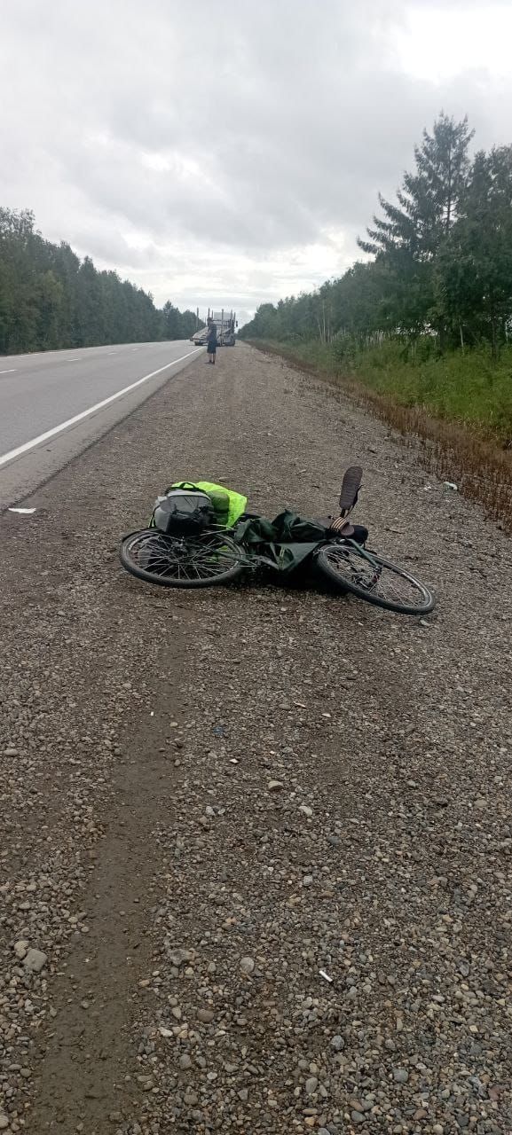 В Хабаровском крае путешественника из Якутии, ехавшего на велосипеде во Владивосток, сдуло с дороги в районе имени Лазо, он в больнице, сообщает «АиФ-Дальинформ».