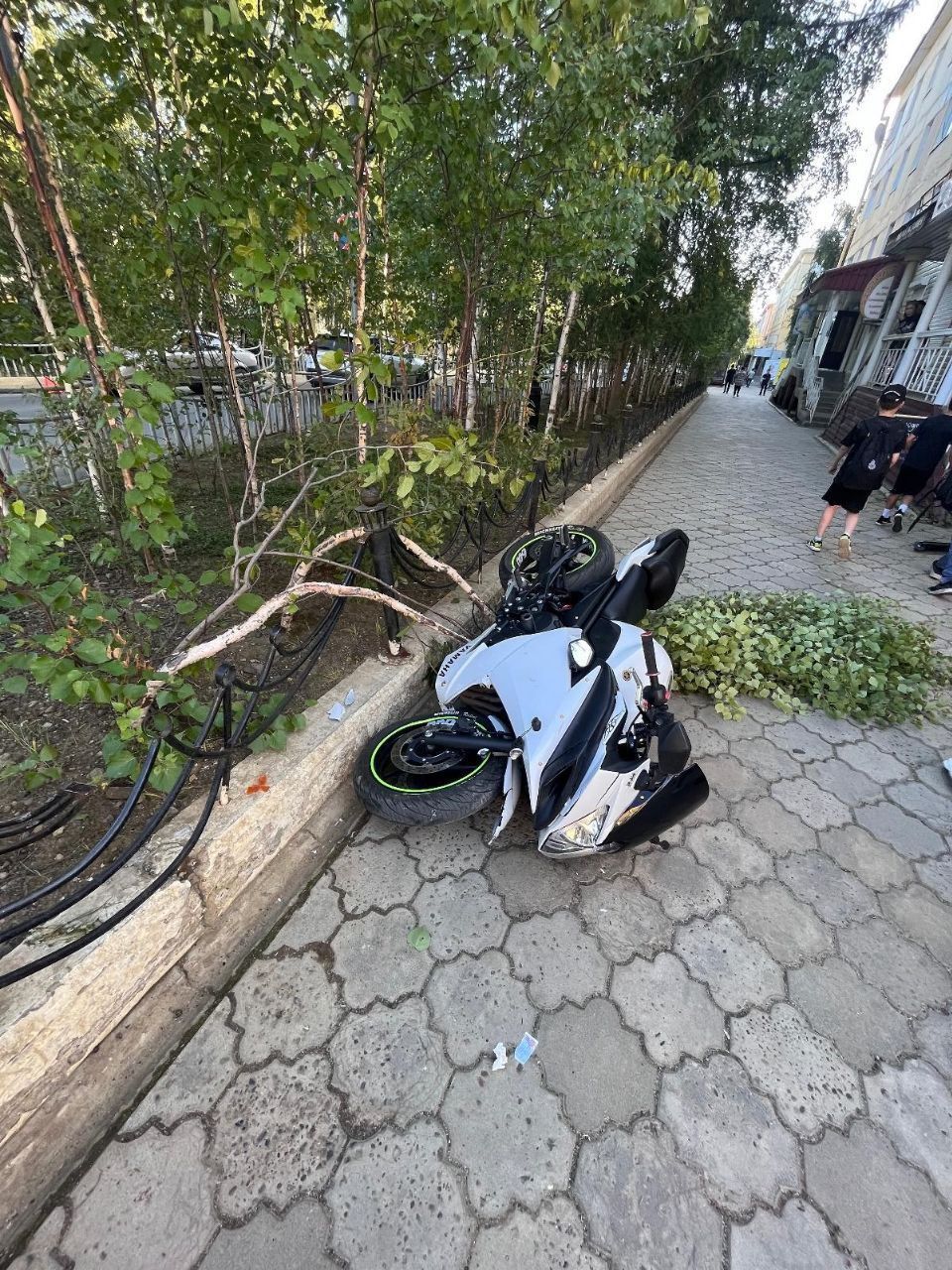 Вечером 25 августа автобус при повороте налево не пропустил встречного мотоциклиста, нарушив правила дорожного движения. Чтобы уйти от столкновения, мотоцикл выехал на тротуар, где наехал на коляску с маленьким ребёнком.