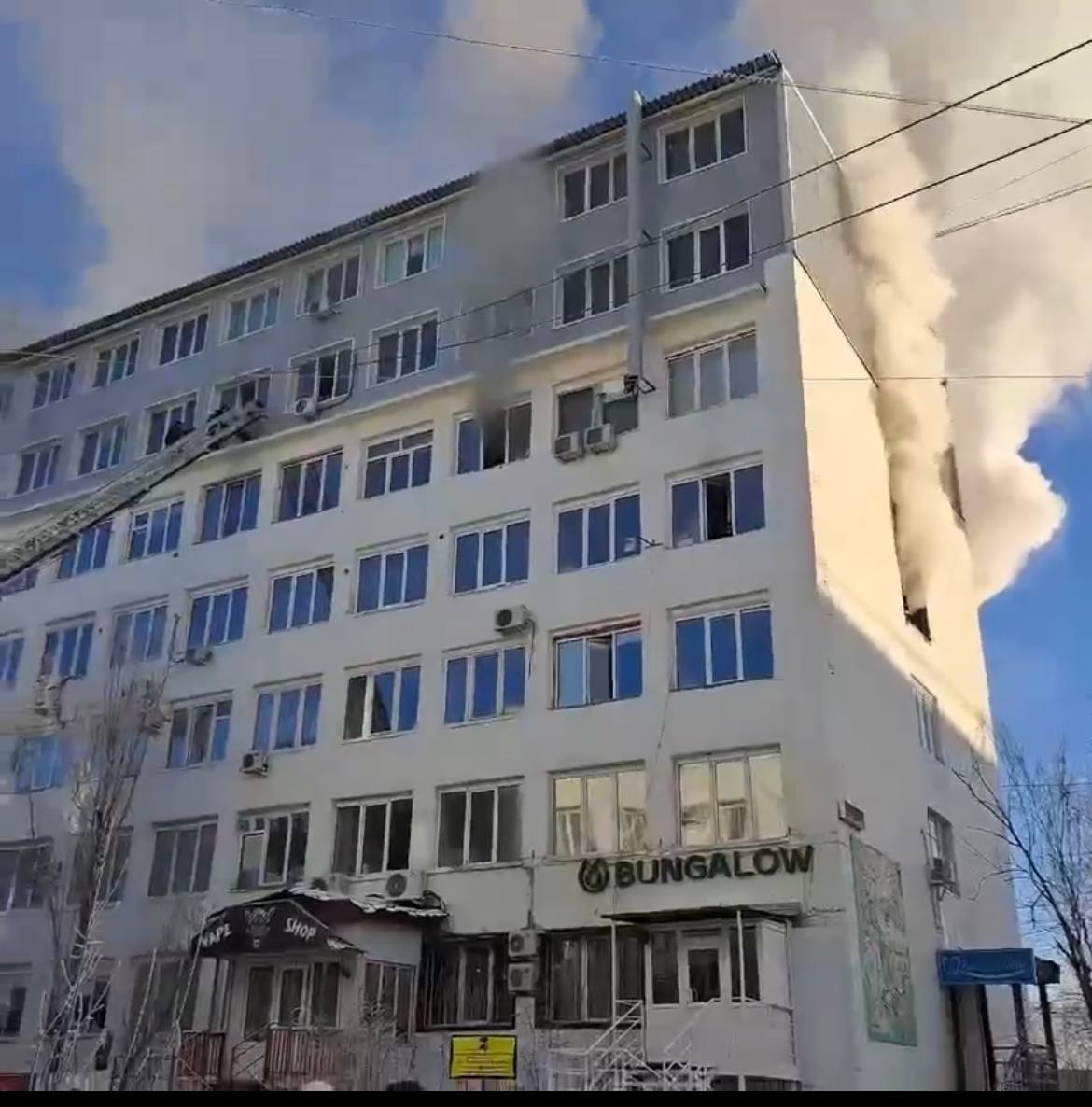 Люди, спасаясь от огня, вышли через окно на парапет. Их удалось удачно эвакуировать с высоты.