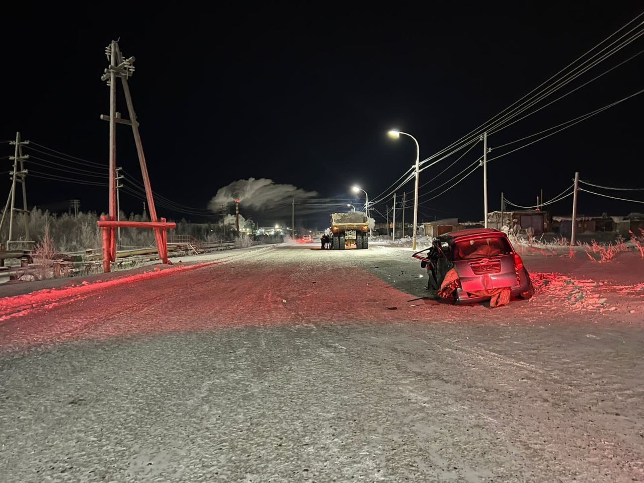Дорожно-транспортное происшествие произошло в темное время суток на прямой дороге с щебеночным покрытием, дефекты покрытия проезжей части отсутствуют, температура воздуха была -30°С. Проводится проверка.