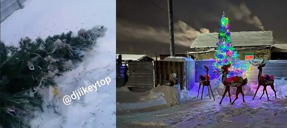 На фотографии, которая была сделана до разрушений, видно, что жительница Мукучу создала красивую композицию из трех оленят, шариков и богато украшенной елки.