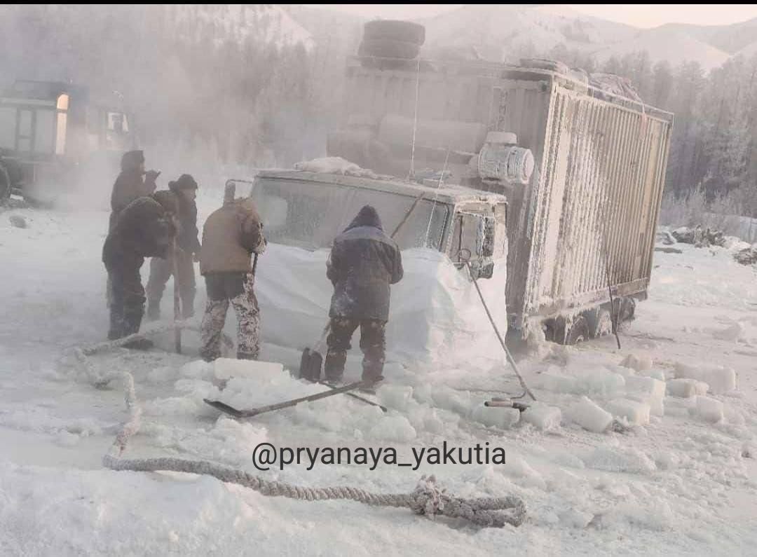 В 18 км от посёлка Тополиный Томпонского района провалился грузовик, следовавший в поселок Батагай Верхоянского улуса. Второй полуприцеп ехал пустой в Якутск и тоже провалился. Ведутся работы по вызволению из ледового плена.