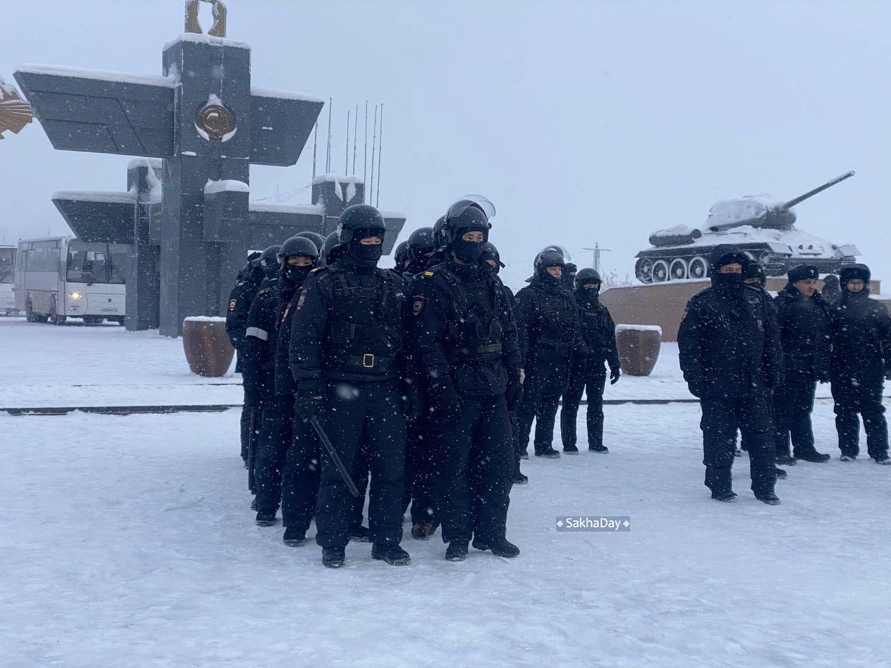 К митингующим вышли заместитель министра внутренних дел Владимир Арбузов и заместитель начальника полиции по охране общественного порядка Олег Лебедь. Они обратили внимание собравшихся о неправомерности происходящих на площади событий, коротко ответили на вопросы о состоянии уголовного дела по факту убийства 18-летнего жителя Якутска, произошедшего 21 января. После короткого диалога с митингующими всех попросили разойтись. Всего на площади собралось около 500 человек из которых порядка 200 являются сотрудниками полиции и росгвардии. К счастью, беспорядков на площади не случилось, мужчины покидают площадь Победы.
