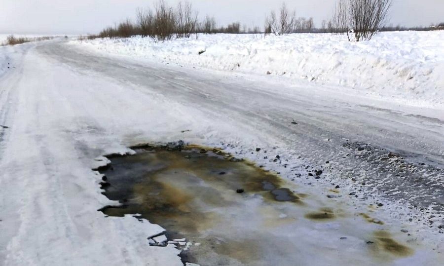 В Томпонском районе Якутии недалеко от переправы через реку Алдан, со стороны села Кэскил, на ФАД «Колыма» были обнаружены следы разлива нефтепродуктов и лопнувшая пластмассовая ёмкость.