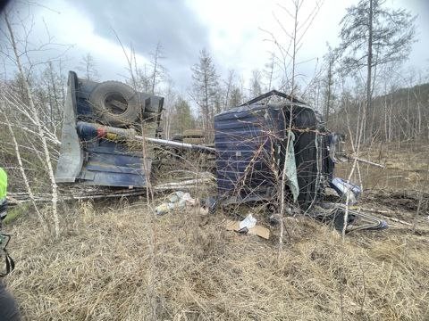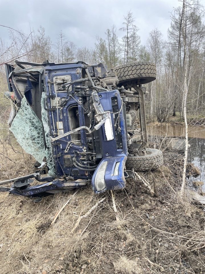 На 55 км. региональной автодороги "Нам" водитель (1999 г.р.), управляя большегрузом марки "FAW", не выбрав безопасную скорость движения, не справился с рулевым управлением и в результате совершил опрокидывание транспорта.