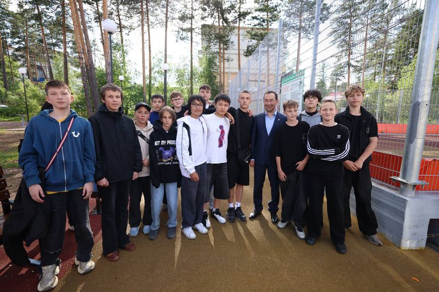 В Нерюнгри Айсен Николаев посетил многофункциональную спортивную площадку, где встретился и пообщался с юными жителями города.