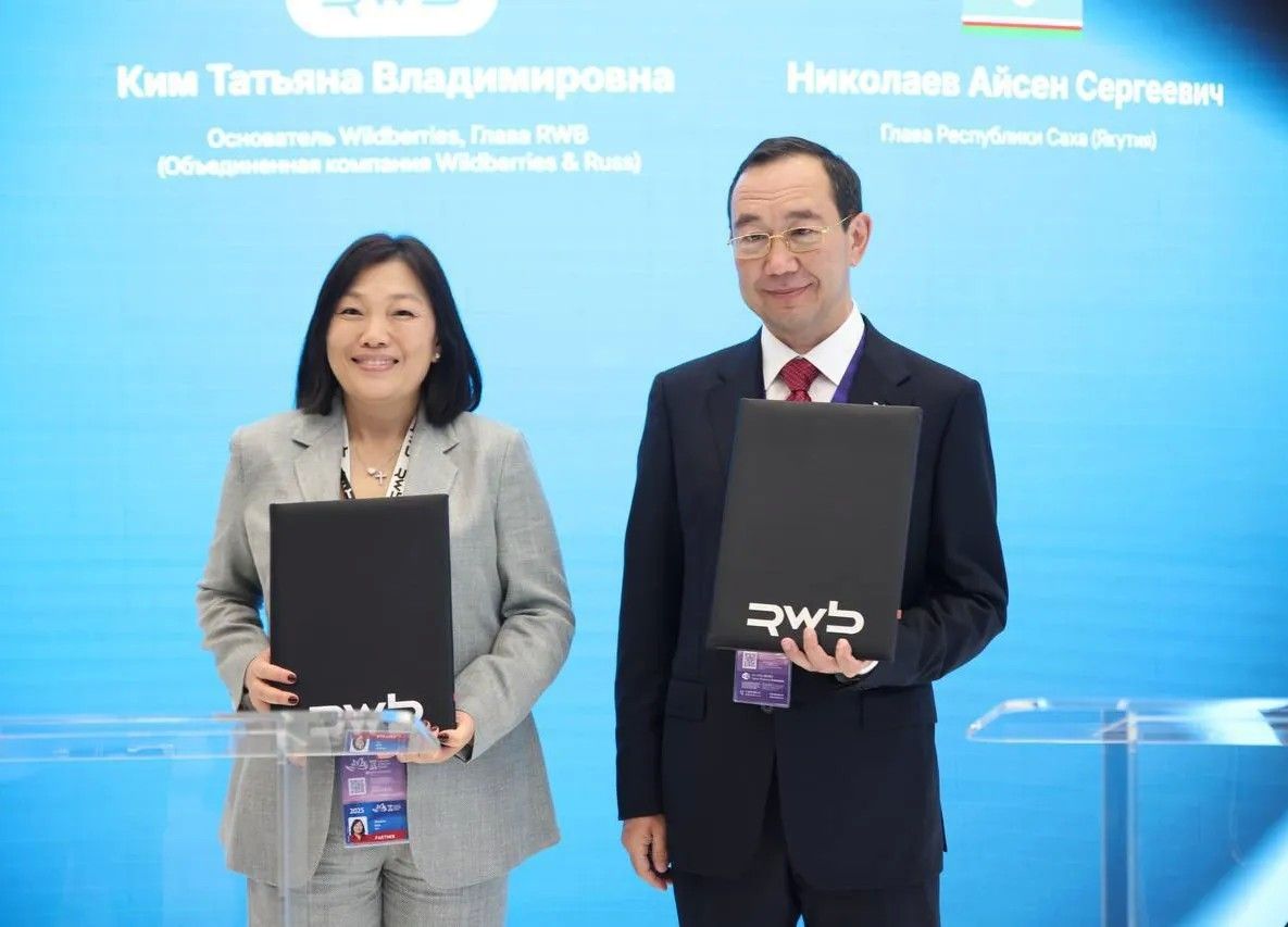 После встречи на площадке форума Правительство Якутии, компания РВБ (Объединенная компания Wildberries & Russ) подписали соглашение о реализации инвестиционного проекта на территории республики. Свои подписи под документом поставили Глава Якутии Айсен Николаев и основатель Wildberries, глава РВБ Татьяна Ким.