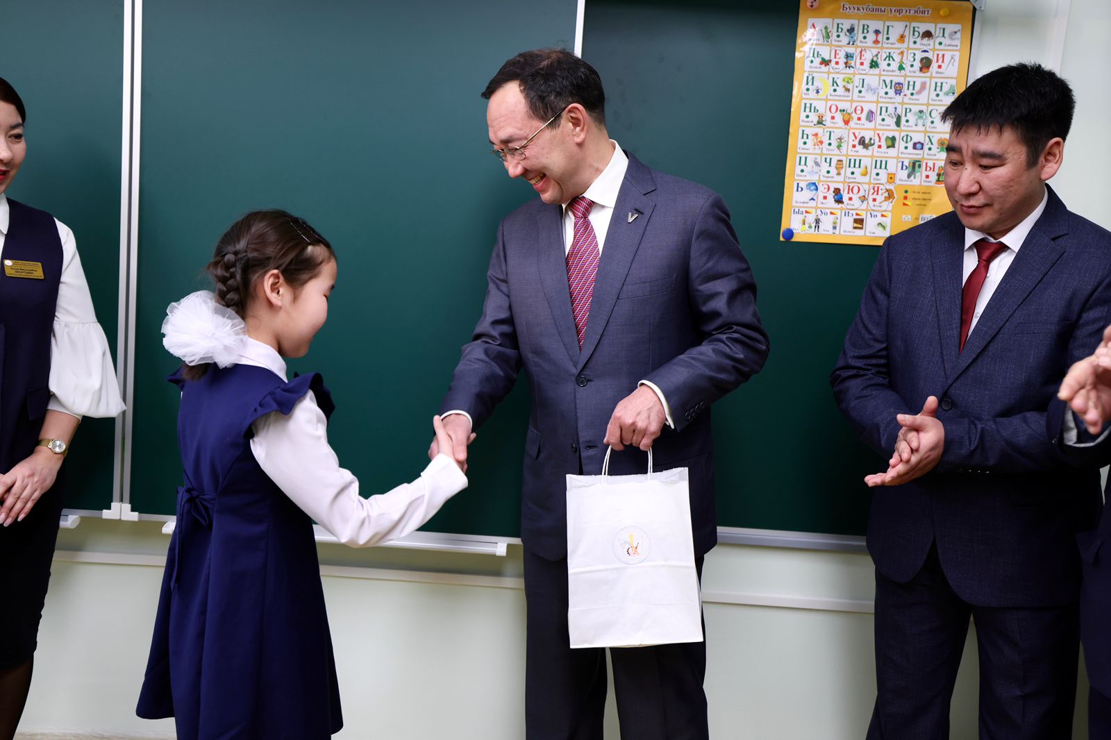 На снимке Глава Якутии на открытии школы в с. Тумул Намского района, 22 января 2025 года.