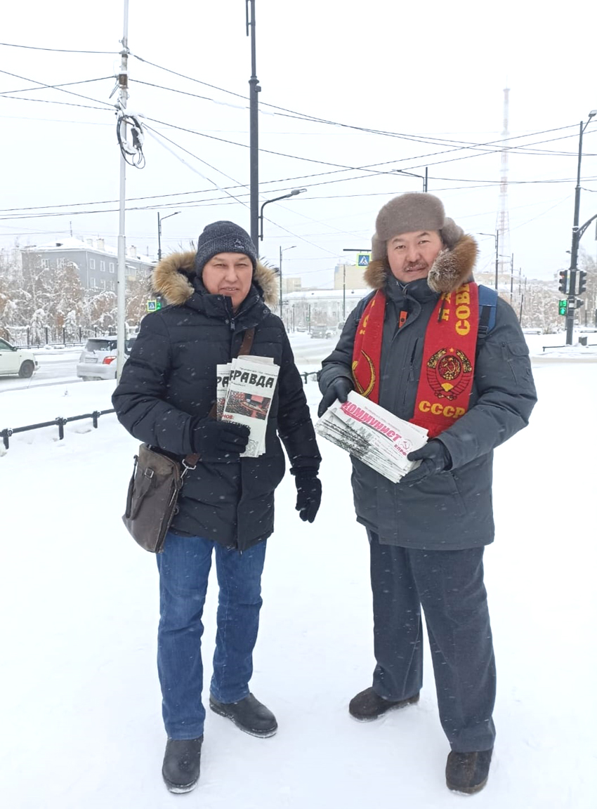 — Актив Якутского городского комитета партии, несмотря на выходной день, организованно вышел в центр города и поздравил горожан с Днем Красной Армии. Отклики у большинства людей были очень приятные, — делится впечатлениями лидер коммунистов Якутска Айаан Ильич. — Они благодарили и говорили: «Коммунисты, мы с вами!» Многие отметили, как очень рады, что имя Ленина возвращено главной площади города. Сегодня мы с таким хорошим настроем проводим патриотическую акцию «Красные — в городе».