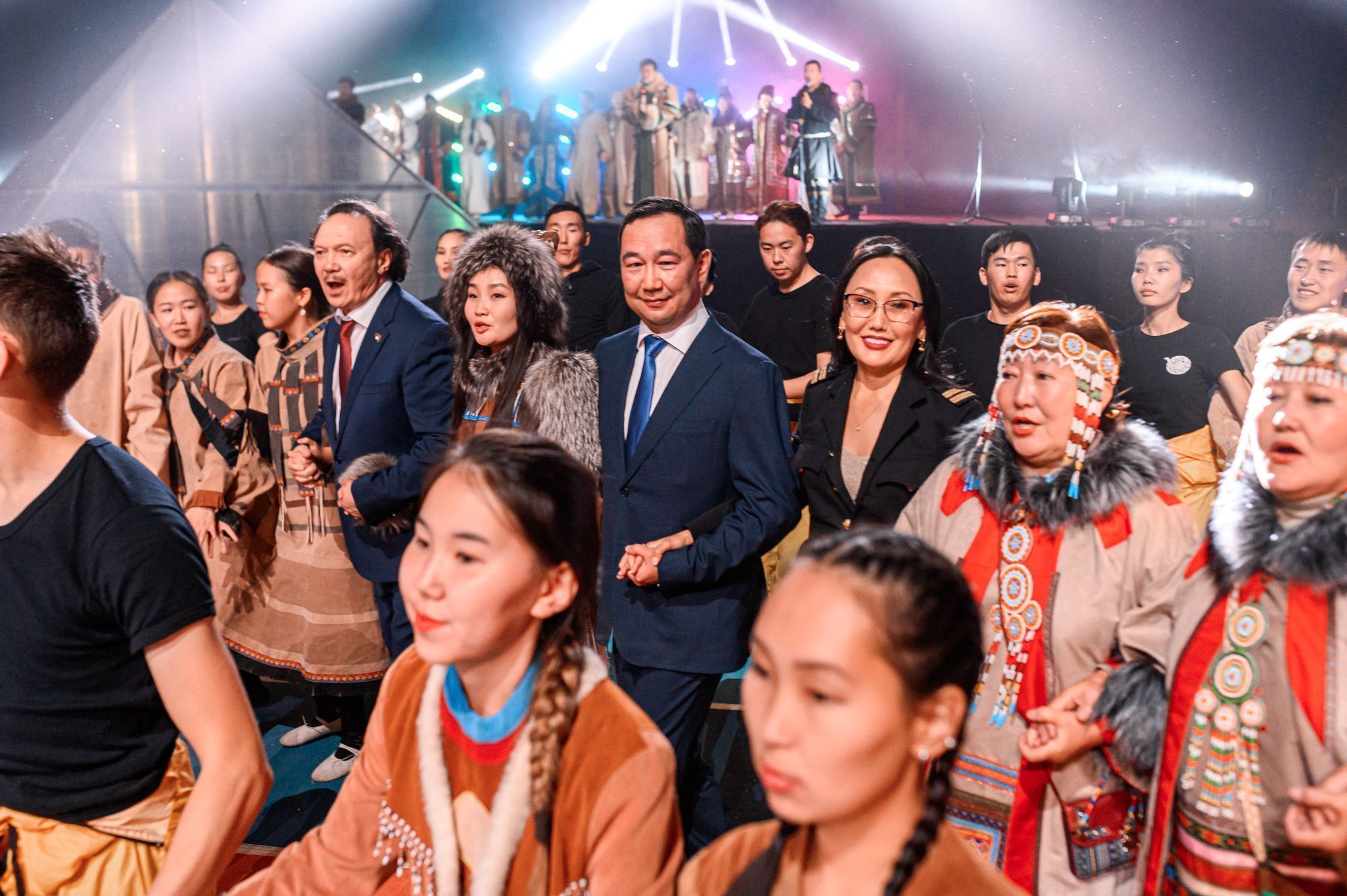 После представления на сцену поднялся глава республики Айсен Николаев. Он поздравил якутян с праздником и отметил, что постановка продемонстрировала глубинную философию Якутии, живую душу народов – чистую, дружелюбную и открытую. «Веками мы живем на родной земле в мире и согласии многих народов, храним нашу бескрайнюю землю, ее уникальную природу для будущего всего человечества», – сказал Айсен Николаев. Он отметил, что Декларация о государственном суверенитете, принятая 27 сентября 1990 года, ознаменовала новую веху политического, экономического и культурного становления современной Якутии, подтвердила будущее республики как неотъемлемую часть великой державы.