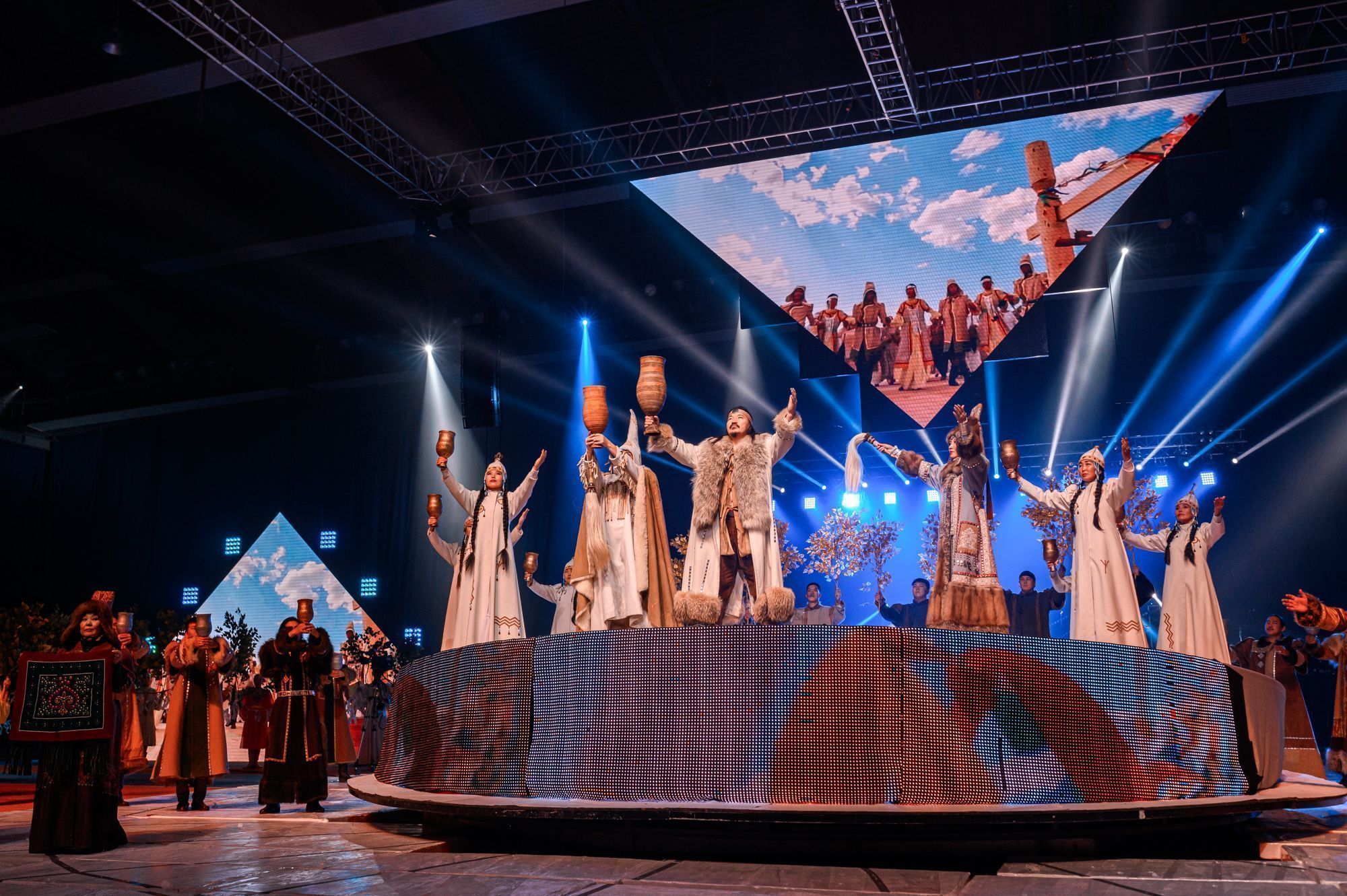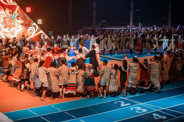 Добавим, что в масштабном театрализованном представлении «Свет над Арктикой» было задействовано 1,5 тысячи ведущих артистов республики, представителей профессиональных учреждений культуры, спорта и молодежи. Постановка завершилась всеобщим круговым национальным танцем Осуохай, который в якутской культуре символизирует мир и согласие.