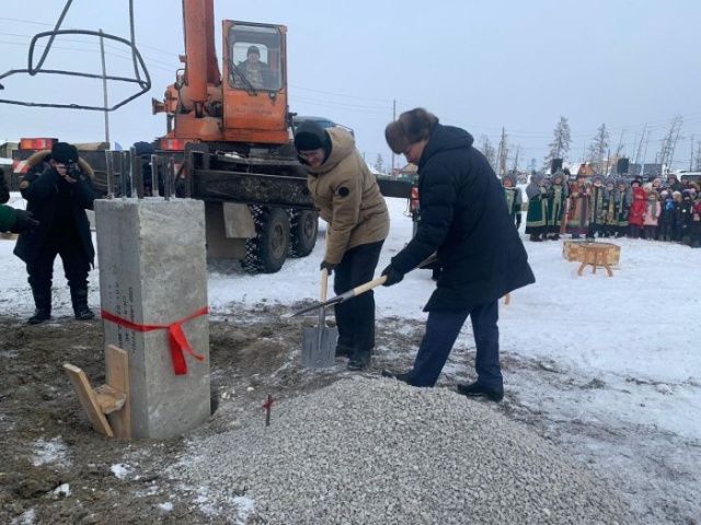 Первую сваю установили сегодня. На церемонии установки присутствовали Председатель Правительства Якутии Владимир Солодов и глава Верхневилюйского района Владимир Поскачин.