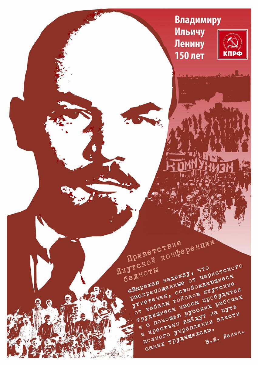 От имени Якутского рескома КПРФ сердечно поздравляю со знаменательной датой — 150-летием со дня рождения В.И. Ленина! Масштаб ленинской личности столь непостижимо велик, что в мире еще не нашлось человека, способного как-то сравниться с этим титаном духа.