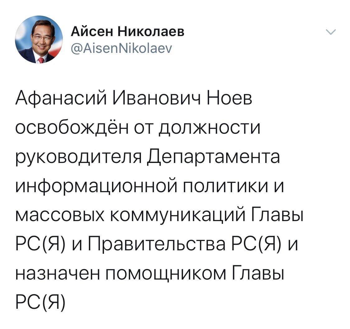 Афанасий Ноев перешел на должность помощника