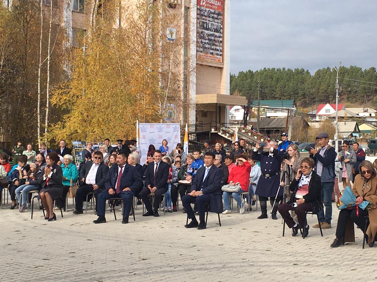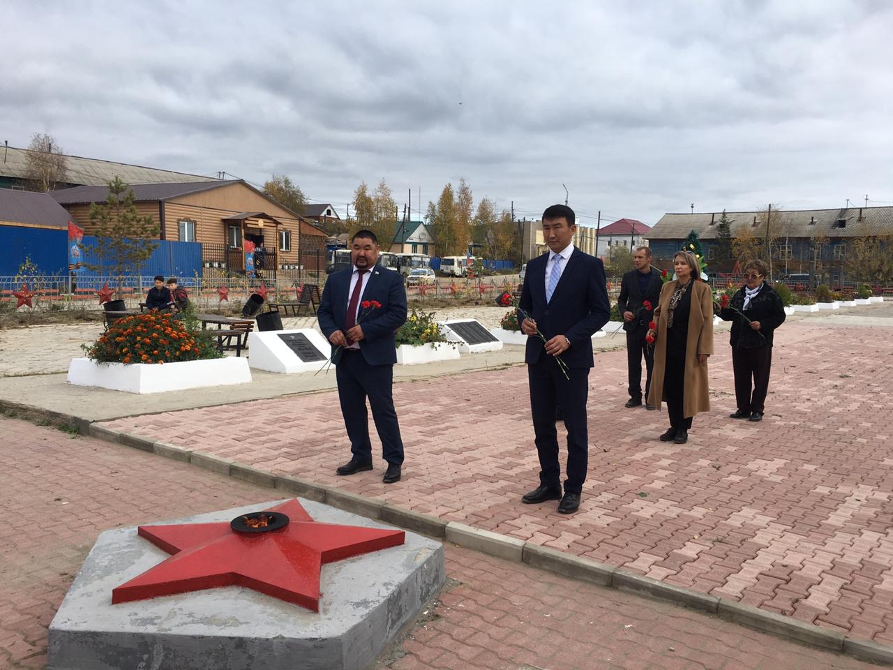 Далее Сергей Местников принял участие в возложении цветов к памятнику Героям Великой Отечественной войны на площади Победы. 6067 олёкминчан отправились Олекминским объединённым военкоматом, в который в 40-ые годы ХХ века входили Олёкминский, Токкинский и Ленский районы, защищать свою Родину от фашистских захватчиков. Домой вернулись только 3 940 человек, 2 127 олёкминчан навсегда остались на полях сражений и пропали без вести. Их память почтили минутой молчания. Сегодня в Олёкминском районе проживает три участника войны – Иван Ильич Рукосуев, Петр Иванович Максимов и Егор Дмитриевич Филатов. За плодотворную деятельность и многолетний добросовестный труд на благо старшего поколения Сергей Местников вручил памятный подарок от имени Главы Якутии Айсена Николаева председателю Совета ветеранов Олёкминского района Лилии Арифулиной.