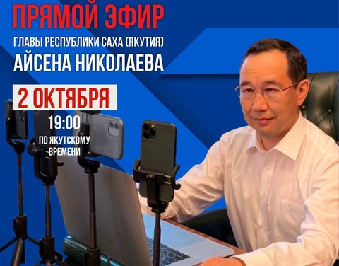 Сегодня, 2 октября, в 19.00 по местному времени Глава Якутии Айсен Николаев выйдет в прямой эфир со своих личных страниц в четырёх социальных сетях.