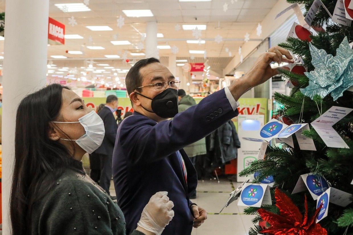 «Акция «Ёлка добра» в этом году проводится в Якутске по линии организации «Город Добра» уже пятый раз. Я всегда принимаю участие в этой акции. К сожалению, сегодня есть много детей, которые в силу разных причин не могут получить новогодние подарки. Эта акция позволяет как можно большему количеству детей получить подарки, приобщиться к новогодней сказке. Рад, что в Якутске есть такая замечательная традиция, и она продолжается», - сказал Айсен Николаев.Руководитель региона отметил, что кроме этого есть и другие благотворительные акции, которые проводят общественные организации республики. Глава Якутии озвучил, что поддерживает их всех. Он считает, что очень важно, чтобы в республике на Новый год и взрослые, и старшее поколение, и тем более дети не остались без новогодних подарков. Айсен Николаев призвал всех участвовать в таких акциях, помогать детям в исполнении их мечты, осуществлении новогоднего чуда.