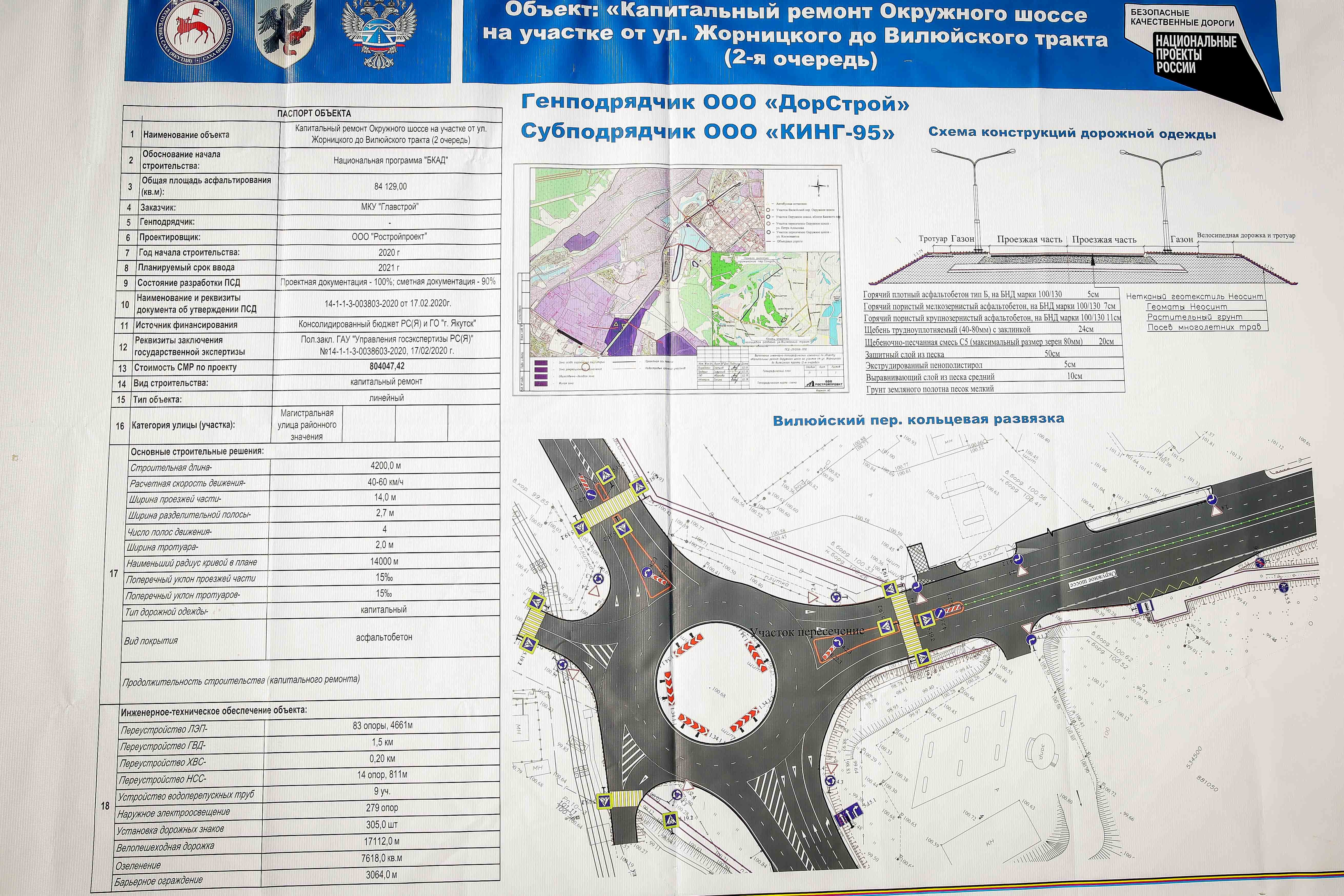 Объект стоимостью более 832 миллионов рублей реализуется в рамках национального проекта «Безопасные и качественные автомобильные дороги». Протяженность реконструируемого участка составляет 4 км 200 метров. В ходе объезда было сказано, что в рамках капремонта в 2020 году проведены работы по уширению земляного полотна, дорожной одежды в соответствии с проектно-сметной документацией протяженностью 2,9 км. За прошлый год освоенная сумма составила более 215 миллионов рублей. Также было отмечено, что будет расширяться Вилюйское кольцо на Вилюйском тракте. Соответствующие работы уже начались.