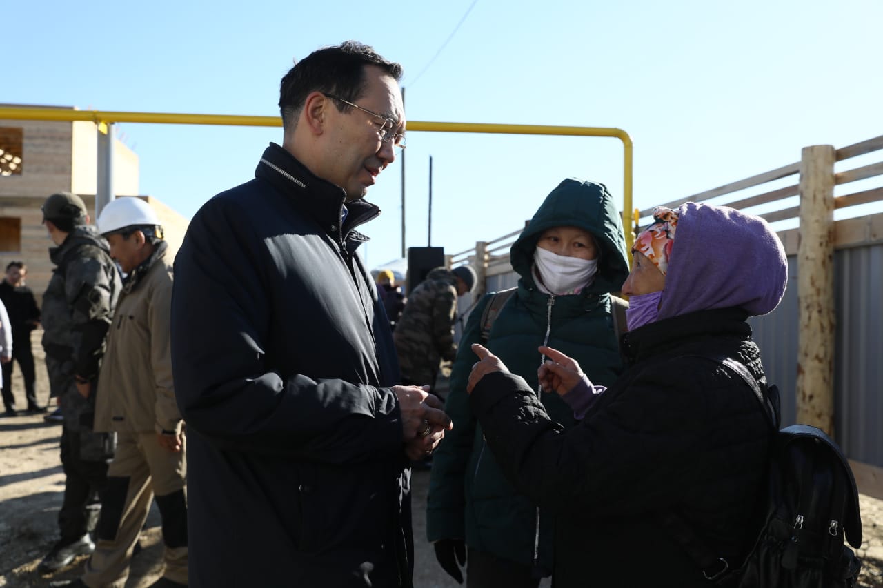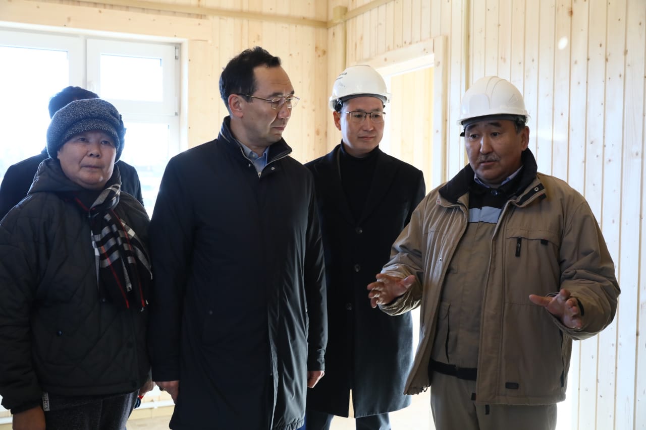 Айсен Николаев подчеркнул, что в организации строительства в таком отдаленном наслеге как Бясь-Кюель сыграла хорошая работа оперативного штаба правительства республики, помощь крупных компаний, как АЛРОСА и Роснефть, которые перечислили 200 млн и 25 млн рублей соответственно, а также помощь добровольческого штаба, который собрал почти 8 млн рублей и перечислил в районный Фонд помощи пострадавшим от пожара.