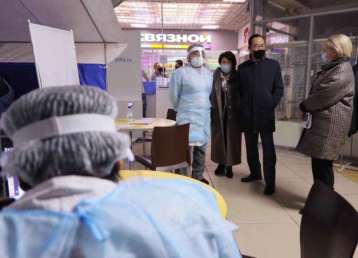 Глава Якутии проверил работу пунктов вакцинации в Якутске: