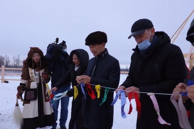 На территории комплекса провели обряд благословения - Алгыс с кормлением духа огня. Также гости повязали лоскутки к саламе, которая в следующем году будет использована при проведении национального праздника Ысыах.