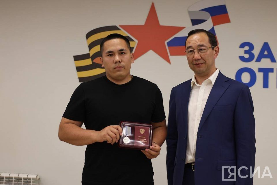 Указом президента России медалью «За отвагу» награжден участник СВО, уроженец Олекминского района Родион Габышев. Награду в филиале госфонда «Защитники Отечества» ему вручил глава Якутии Айсен Николаев.