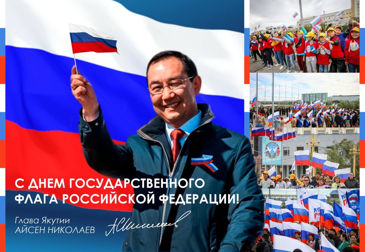 От имени руководства Республики Саха (Якутия) и от себя лично сердечно поздравляю вас с Днём Государственного флага Российской Федерации!