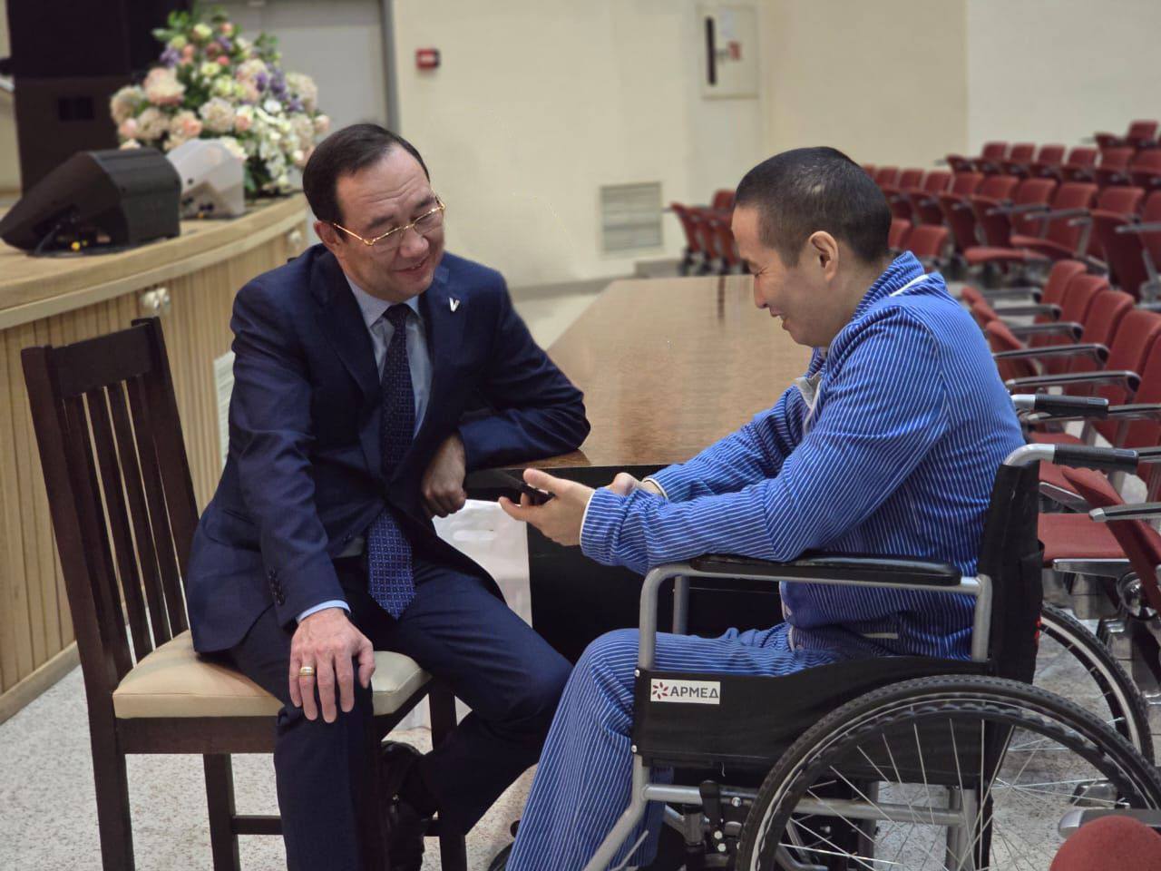 Айсен Николаев поговорил с ранеными бойцами, в том числе с министром по делам молодежи и социальным коммуникациям Якутии Петром Шамаевым, который получил тяжелое ранение в ходе выполнения боевой задачи на специальной военной операции.