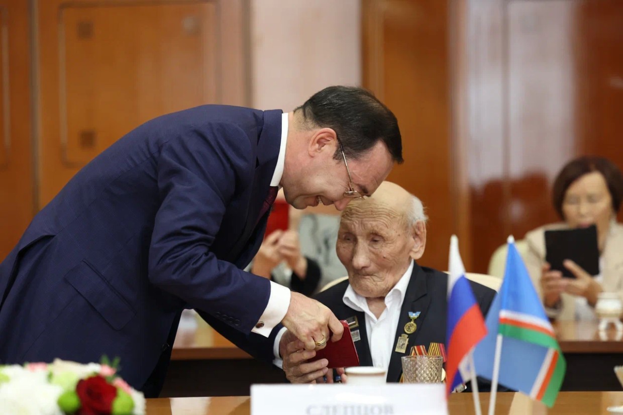 «Идеалы и ценности, заложенные старшими поколениями, сегодня продолжаются в общей работе, в достижениях якутян, которые все посвящены родной республике и любимой России. В год 80-летия Великой Победы мы глубже осознаем силу нашего многонационального народа, силу любви и преданности Родине. Сегодня на полях специальной военной операции, продолжая ратные традиции старшего поколения, бойцы – якутяне отважно воюют за правду и справедливость, за будущее Отечества. Мы гордимся ими, верим в скорую победу и ждём наших воинов домой», – сказал в своём выступлении Глава Якутии, обращаясь к награждённым.