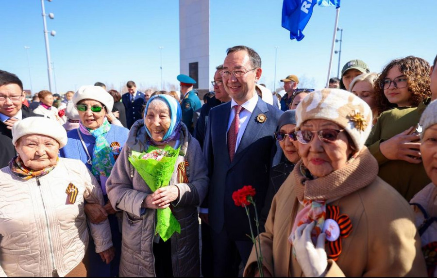 «15 ноября 2022 года наш президент Владимир Владимирович Путин подписал указ о присвоении Якутску почётного звания «Город трудовой доблести». Тем самым он высоко оценил тот вклад, который внесён столицей республики и в целом нашей Якутией в Победу. 62 тысячи якутян сражались на фронтах Великой Отечественной, а здесь, в тылу, работали десятки тысяч людей. Якутяне обеспечивали валютный запас страны, поставляя золото, пушнину в фонды государства. Конечно же, никто никогда не забудет, что именно Якутск был центром АЛСИБа, по которому тысячи самолётов поступали на фронт. Уверен, что сюда многие десятилетия, столетия будут приходить люди и отдавать дань великой памяти поколению победителей», – сказал Айсен Николаев.