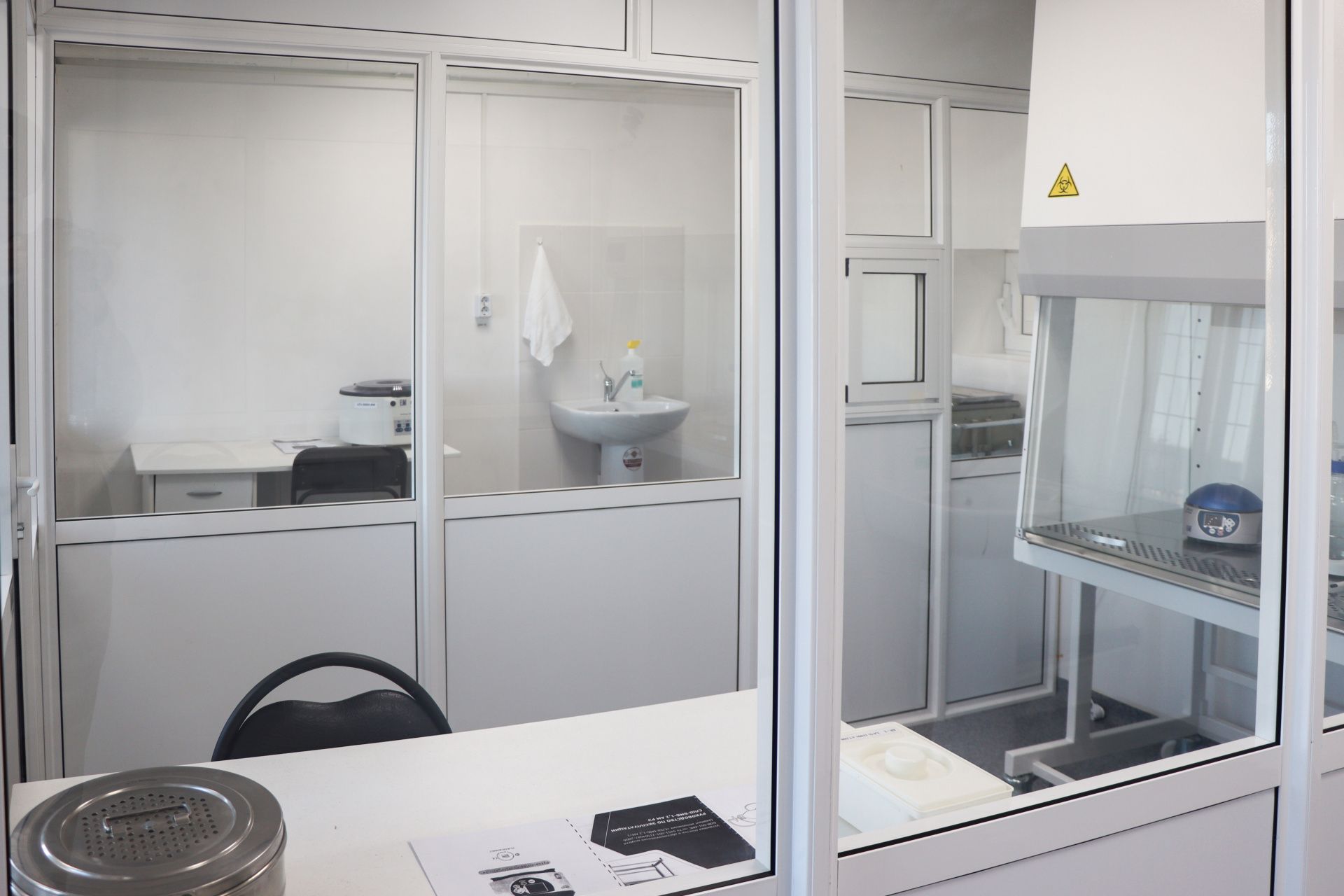 Согласно стандартам лаборатория оснащена всем необходимым медицинским оборудованием: боксами биологической безопасности и абактериальной воздушной среды, амплификаторами, аспираторами, термостатами, вортексами персональными, автоматическими пипеточными дозаторами, холодильниками и другим.