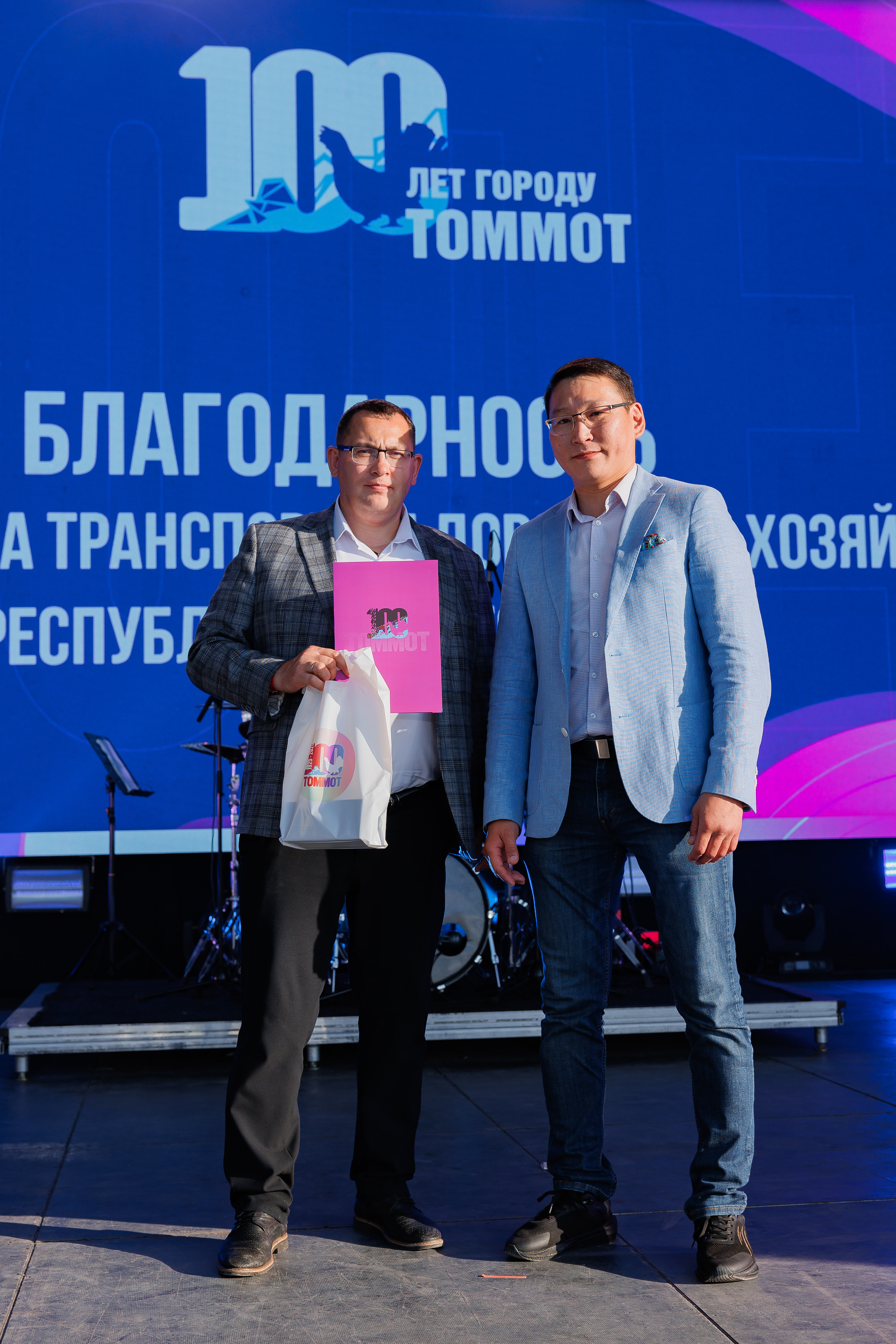 Особый вклад Ассоциации строителей АЯМ в развитие городского поселения Томмот был отмечен Министерством транспорта и дорожного хозяйства республики. Благодарность за подписью министра Сивцева В.М. была вручена О.С.Мартелю за профессионализм, опыт, вклад, направленный на эффективное решение поставленных задач. Также О.С Мартель и начальник томмотского транспортного участка Ассоциации В.А. Раченков был награжден Почетной грамотой главы ГП «Город Томмот» за особые заслуги и личный вклад в социально-экономическое развитие города и в связи со 100-летием со дня его основания с вручением Знака «Гордость Томмота». Нельзя не отметить, что в знак высшей признательности и уважения жителей городского поселения «Город Томмот» троим самым заслуженным людям в этот день было присвоено звание «Почётный гражданин города Томмот»: Коростелёвой Людмиле Васильевне – ветерану педагогического труда, Черватюк Марии Павловне – депутату городского Совета и Шимохину Василию Владимировичу – генеральному директору акционерного общества «Акционерная компания «Железные дороги Якутии». Очень многие заслуженные труженики были отмечены в этот день на празднике в парке «Укулан».