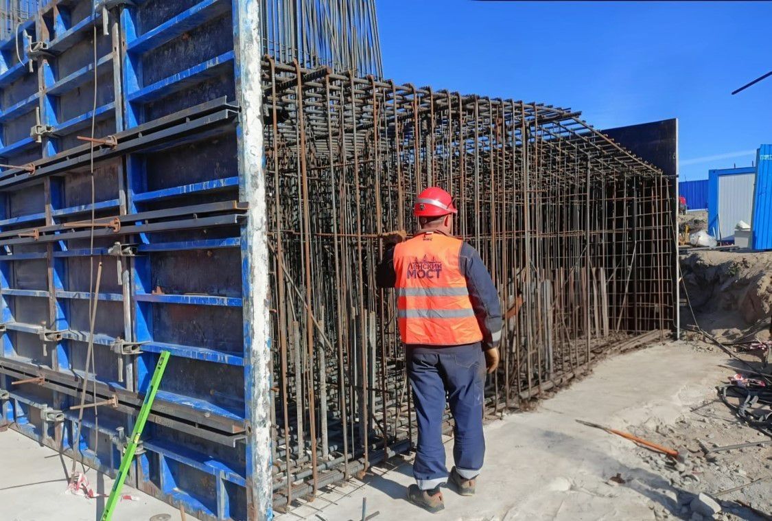 На левом берегу завершено бетонирование ростверка первой опоры. На текущий момент ведется его армирование и бетонирование. Две следующие опоры №5 и №6 также успешно прошли испытания нагрузкой, в ближайшее время начнётся возведение их ростверков.