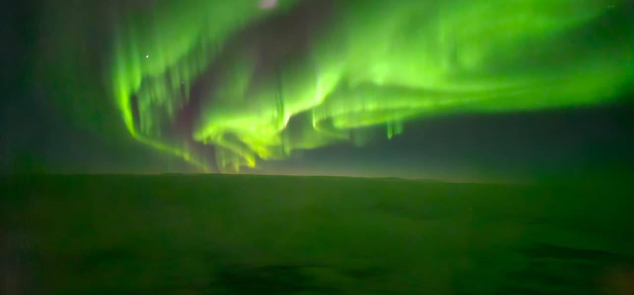 30 сентября пассажирам авиарейса «Якутск — Депутатский» посчастливилось наблюдать одно из самых красивых природных явлений — северное сияние. За иллюминатором развернулось завораживающее зрелище: изумрудные ленты вспыхивали и плавно разливались в ночном небе над Якутией.