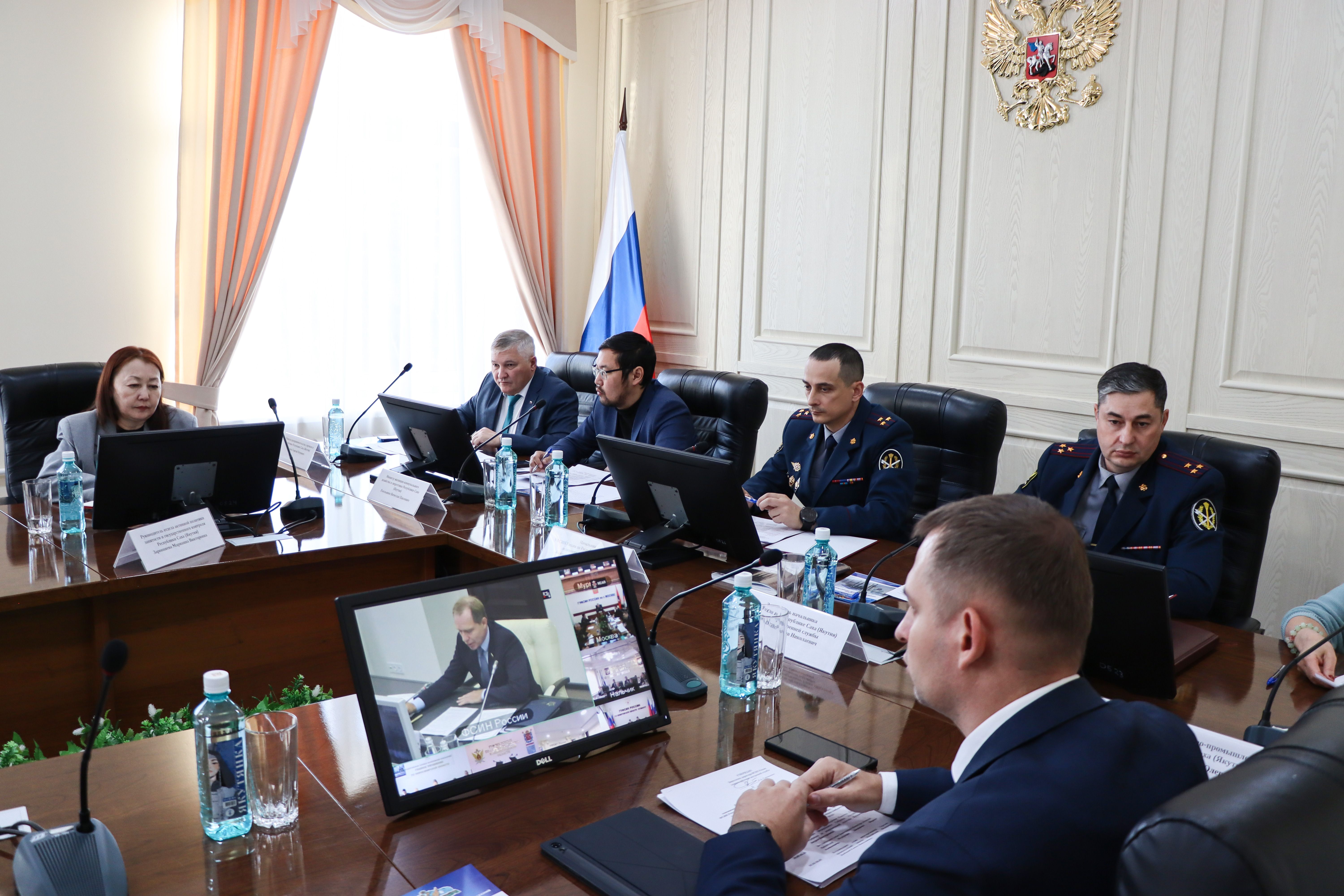 В режиме видеоконференцсвязи от Республики Саха (Якутия) в совещании приняли участие начальник УФСИН Сергей Калиновский и его заместитель Станислав Тетерин, Президент Торгово-промышленной палаты Марина Богословская, представители Министерства предпринимательства, торговли и туризма, Министерства жилищно-коммунального хозяйства и энергетики, Министерства промышленности и геологии, Министерства здравоохранения, Государственного комитета по занятости населения.