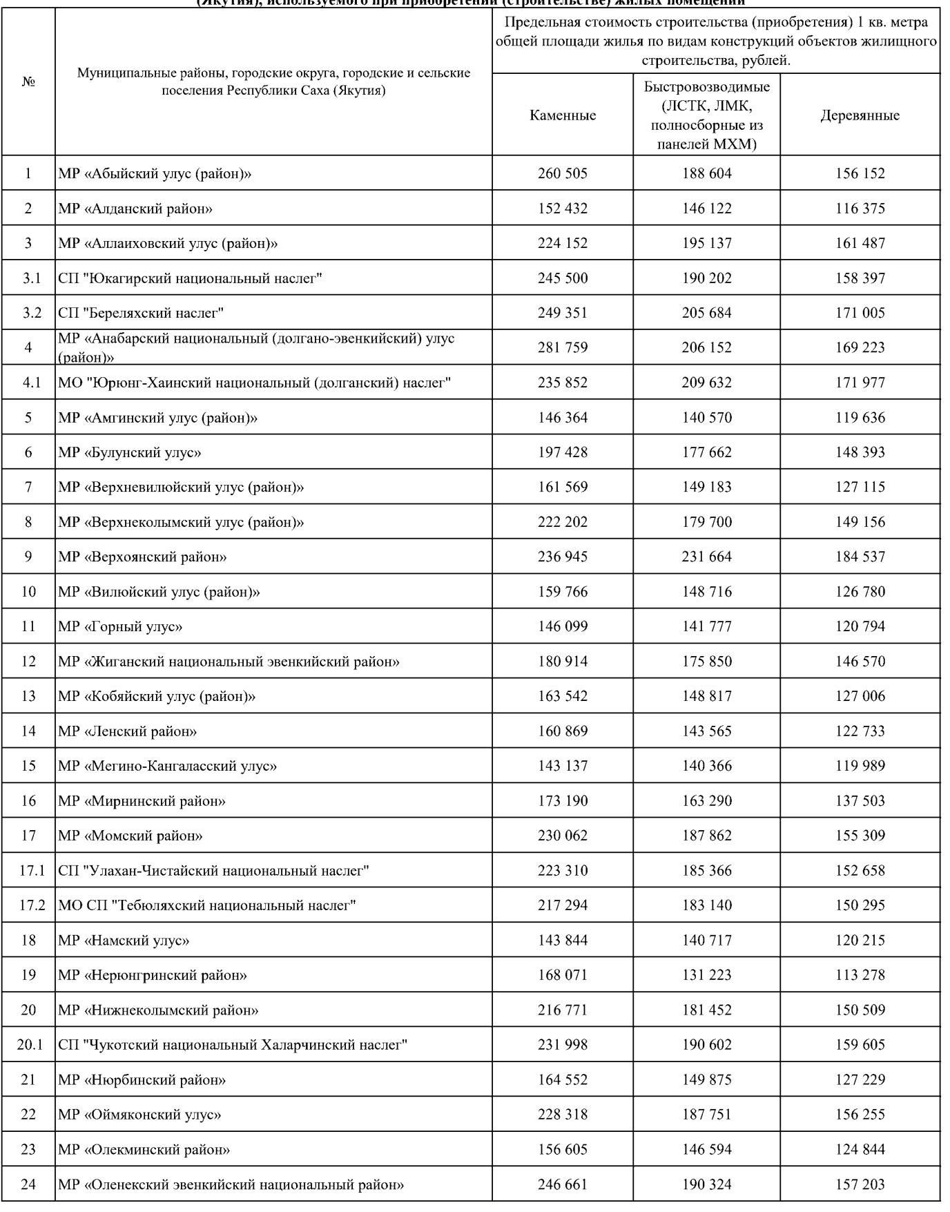 Министр строительства Якутии 24 октября установил стоимость одного квадратного метра площади жилого помещения, для определения в 2025-2026 годах размера предельной стоимости одного квадратного метра при приобретении (строительстве) жилых помещений в рамках реализации республиканской адресной программы переселения граждан из аварийного жилищного фонда, признанного таковым после 1 января 2017 года.