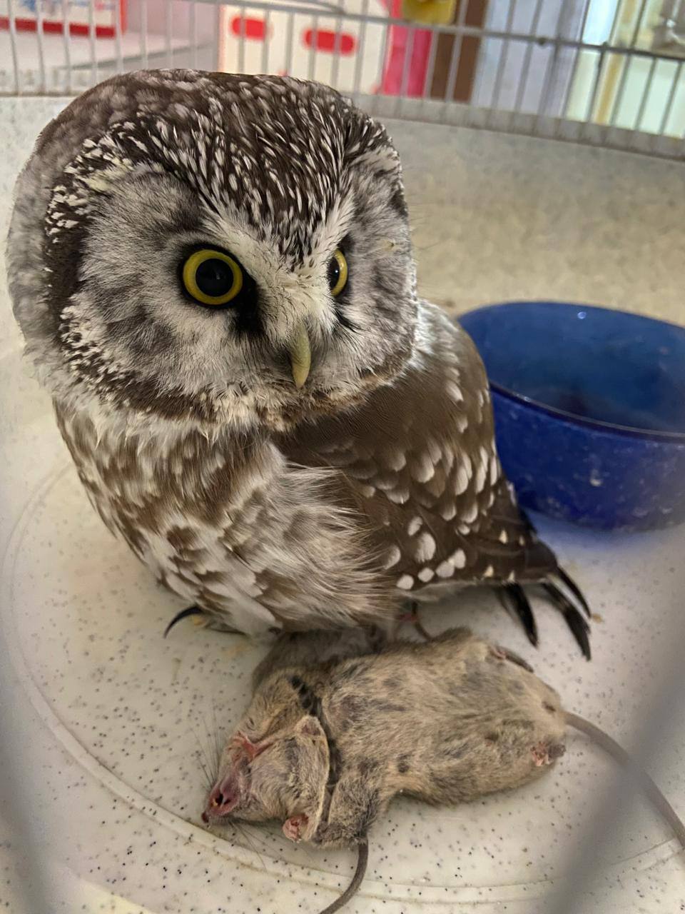 Сейчас состояние сыча удовлетворительное. Птицу поместили на месячный карантин. Это стандартная процедура для всех новичков. Она нужна, чтобы обезопасить других обитателей зоопарка от возможных инфекций.
